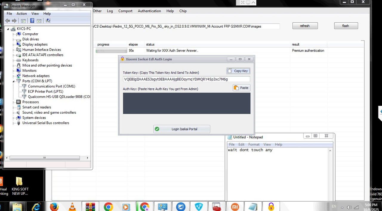 4. Auth Injection: The loader tool injects this auth key back into the device, granting permission to proceed with flashing, wiping, or unlocking tasks.